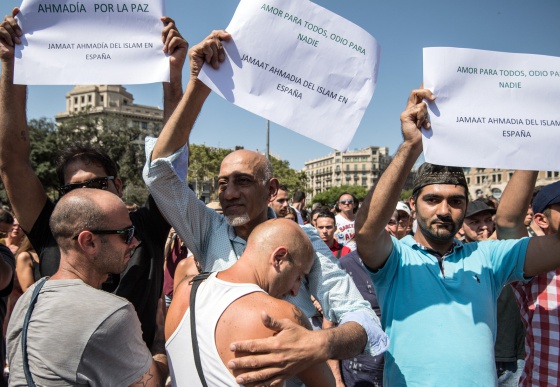 ¡Enternecedor! Buenistas catalanes abrazan a un grupo de musulmanes que pedían “amor para todos, odio para nadie”