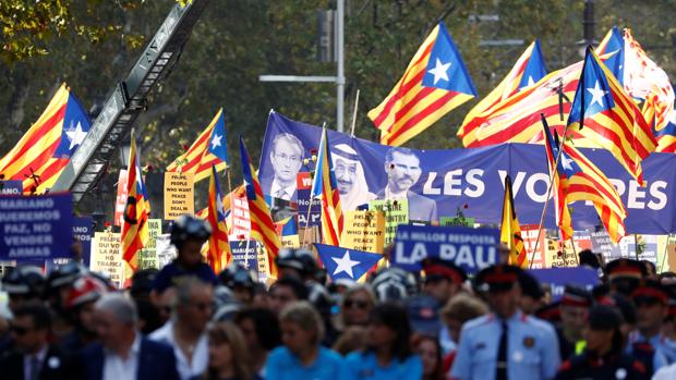 La decisión de asistir a la marcha de Barcelona -que como era de temer resultó penosa en su enfoque moralmente cobarde y políticamente sesgado- es un salto cualitativo, por falta de antecedentes, que Felipe VI ha dado con plena conciencia de que iba a generar polémica y de que se exponía a un recibimiento poco grato. Pero de no haber acudido también lo hubiesen criticado. Así las cosas, el Monarca se ha dejado llevar por un instinto que tiene bien asimilado; no sólo se trataba de estar con el pueblo, ese borboneo familiar que mezcla populismo y tacto, sino de dejar claro el anclaje de Cataluña en España y en su Estado. La Corona sólo se puede expresar con un lenguaje simbólico y éste era un gesto necesario de afirmación institucional frente a -y en medio de- quienes se esfuerzan en desanudar lazos.