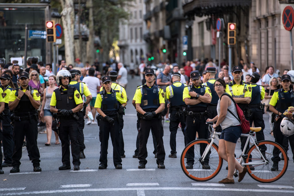 Agentes de policía desplegados en las Ramblas de Barcelona el 18 de agosto de 2017, cerca del lugar en que la víspera se perpetró un ataque terrorista. (Foto: Carl Court/Getty Images).