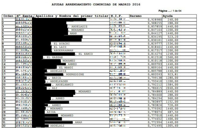 “cifradas entre los 1.000 y los 2.000 euros al mes”. El máximo que se puede recibir de ayudas al alquiler en la comunidad de Madrid son 2.400 euros “anuales”. El dinero de los listados es anual.