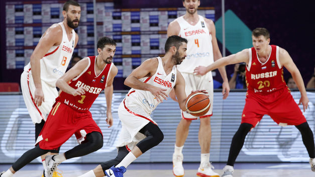 El pívot de los Spurs, en conexión directa con el Chacho, dio un recital de fundamentos bajo el aro ruso y dominó en ambas zonas en un gran cuarto (12+6), que hubiese sido perfecto de haber anotado los tiros libres. De su mano España se fue en el marcador (42-25, min 20). Shved (12) empujaba lo que podía, pero San Emeterio primero, Sastre después y Ricky más tarde apenas le dejaron respirar. El Chacho, enorme en este acto, sellaba la máxima renta con un robo y un contraataque de manualk (45-28, min 20).En la reanudación, ya con Marc de vuelta, España pareció dar el estirón definitivo (51-33, min 24). El pívot de los Grizzlies monopolizó el ataque y con un recital de canastas (triple incluido) pareció encarrilar el triunfo (60-43, min 27). Pero Rusia no estaba dispuesta a capitular sin antes luchar y se acercó en el marcador con las acometidas de Kurbanov y Khvostov (62-52, min 229). Sólo el Chacho frenó algo la sangría con dos canastas cruciales (66-55, min 30).