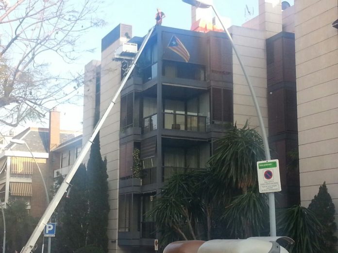 La casa del cónsul honorario, Jordi Sumarroca, supuestamente podría albergar parte de las urnas encargadas para el referéndum secesionista. La foto, realizada en el mes de marzo, capta el momento en el que una empresa de mudanzas sube -mediante una grúa de gran tamaño- voluminosas cajas hasta el ático del edificio de la calle Freixas de Barcelona en la que el comisionista Sumarroca tiene domiciliado el consulado de Lituania. En la ventana de la vivienda puede observarse la bandera estelada.