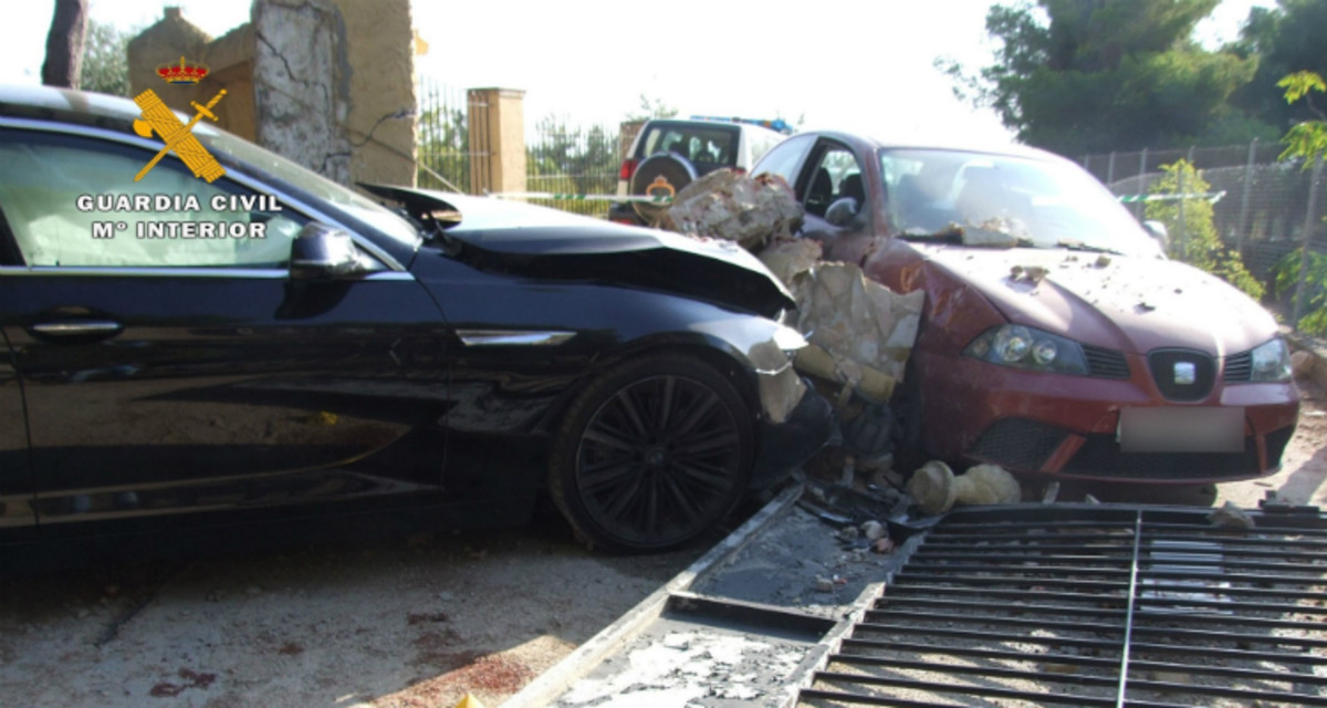 Tras conseguir salir de la vivienda, el herido se dirigió hacía su vehículo para huir del lugar, no lográndolo al colisionar con la verja de entrada a la finca y el vehículo de uno de los detenidos que se encontraba estacionado en el exterior, que resultó herido de gravedad en una pierna, tras la rápida maniobra del conductor.