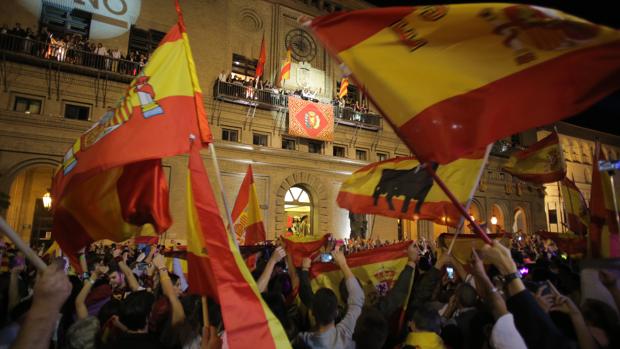 El tradicional pregón inaugural de las Fiestas del Pilar estuvo marcado este año por un tono reivindicativo, con cientos de banderas en defensa de la unidad de España y una pitada de protesta contra el alcalde de Zaragoza, Pedro Santisteve.