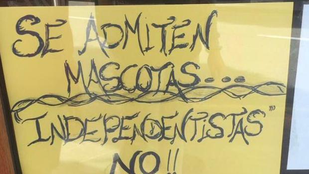 El imagen se ha viralizado en las redes sociales, donde ha generado diversidad de opiniones. El motivo no ha sido otro que el peculiar cartel colgado por una cafetería de la ciudad que no ha dejado indiferente a nadie en las redes sociales. En él puede leerse «Se admiten mascotas… Independentistas no».