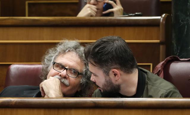 Los diputados de ERC, Joan Tardá(i) y Gabriel Rufián durante el pleno del Congreso de los Diputados de Madrid.