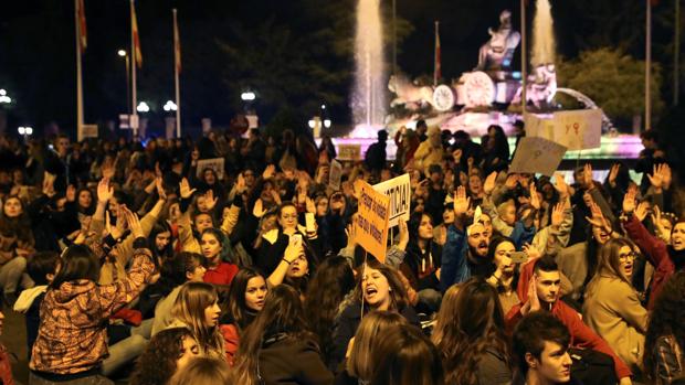 “La Manada” feminista corta la Gran Vía, se erige en tribunal paralelo y niega la presunción de inocencia de los jóvenes juzgados por una denuncia de violación