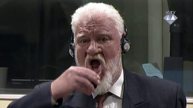 La Corte Penal Internacional para la exYugoslavia se ha visto obligada a suspender el juicio por crímenes de guerra contra el exgeneral croata Slobodan Praljak después de que el acusado haya bebido un líquido venenoso de un pequeño frasco. Antes de beber de una pequeña botella marrón, Praljak gritó: “Praljak no es un criminal”