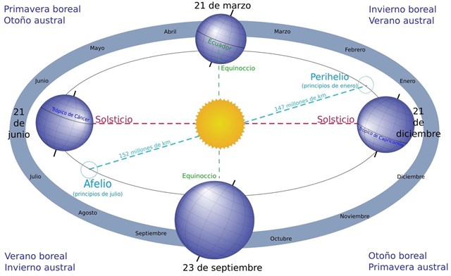 Este 3 de enero, la Tierra se sitúa en el perihelio, mayor proximidad al Sol en su órbita anual. Eso produce la máxima velocidad orbital, acelerando 3.420 kilómetros por hora sobre el promedio. La Tierra gira alrededor del Sol, describiendo una órbita elíptica de 930 millones de kilómetros, a una velocidad media de 107.280 kilómetros por hora, lo que supone recorrer la distancia en 365 días y casi 6 horas, de ahí que cada cuatro años se cuente uno bisiesto.