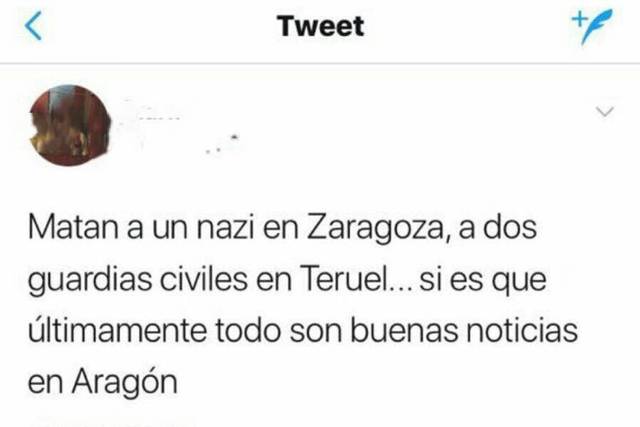 La Guardia Civil ha procedido a la detención de una persona en Zuera y a la investigación de otras dos en la provincia de Barcelona con motivo de los comentarios que publicaron en Twitter después del asesinato de los guardias civiles Víctor Romero y Víctor Jesús Caballero, un crimen en el que también falleció el ganadero José Luis Iranzo en Andorra, a manos de Norbert Feher, alias Igor el Ruso.