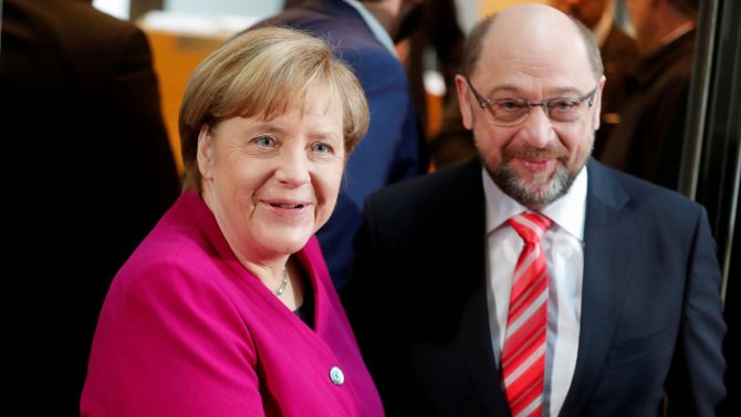 Merkel había intentado formar un gobierno con los Liberales (FDP) y los Verdes. Aquel intento con dos partidos antitéticos fracasó estrepitosamente. Después solo quedaban dos opciones, la gran coalición o nuevas elecciones. El pánico a la segunda obligaba a la primera. Su principal, quizás única virtud, será acabar con el gobierno en funciones y transmitir en Europa la sensación de que se desatasca la crisis alemana. Pero no se sabe hasta qué punto. Ni hasta cuándo.