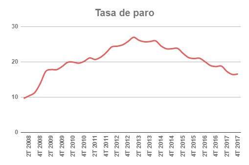 Pese a los buenos datos de cierre del año, en el cuarto trimeste de 2017, el número de desempleados subió en 34.900 personas con un porcentaje de desempleo 16 centésimas mayor que en el trimestre anterior. Sin embargo, en el conjunto del año, esta tasa ha descendido en 2,09 puntos.