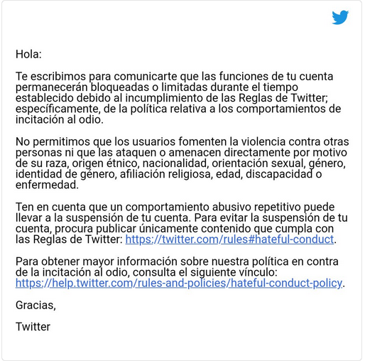 Twitter, que habitualmente mantiene miles de tuits islamistas y de extrema izquierda apelando a la violencia contra determinadas personas en particular, y Occidente en general, ha dado la callada por respuesta. Y la censura, una vez más, se mantiene firme en la red social.