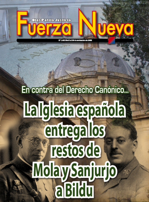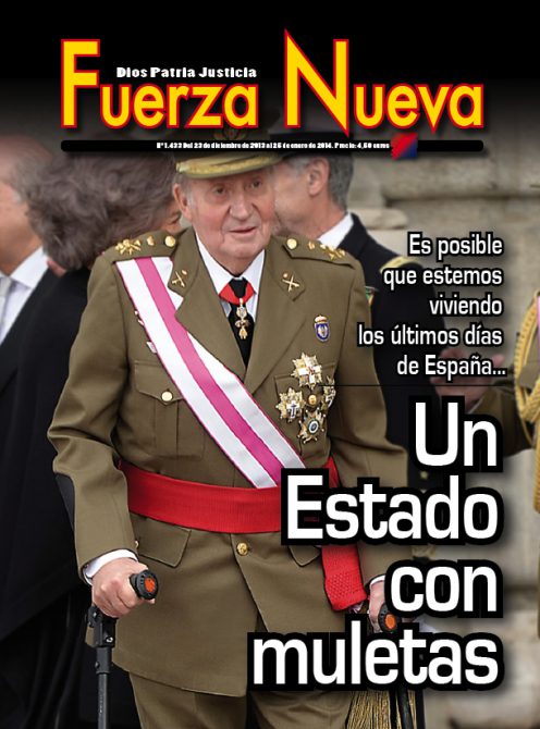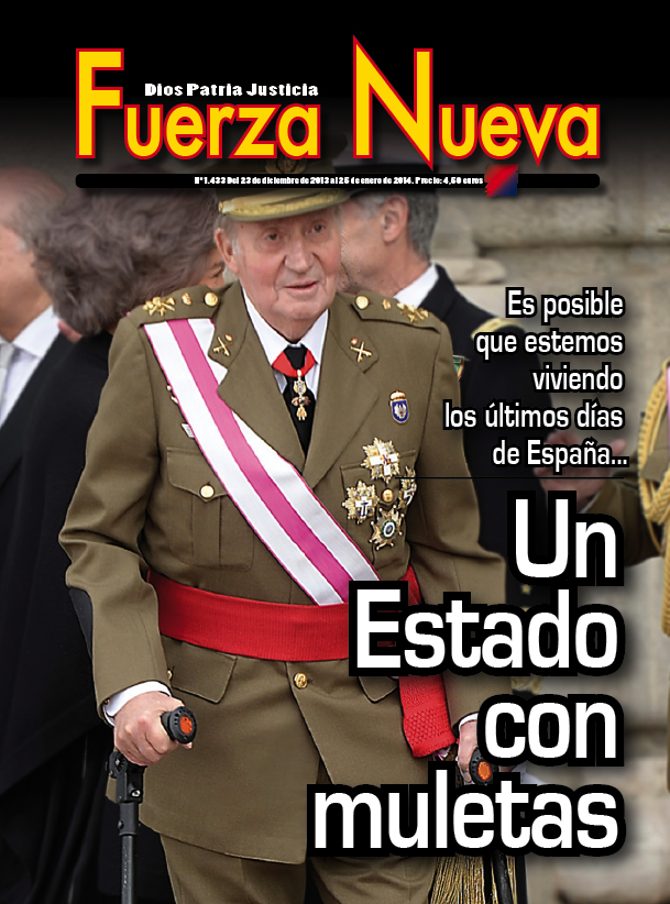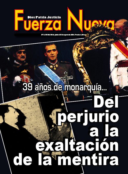Vistas desde hoy, una selección de las portadas de Fuerza Nueva se convierte en un auténtico flash-back de los últimos cincuenta años de historia política de España. Detengámonos, por ejemplo, porque una revisión profunda excedería las dimensiones de un artículo como este, en la batalla que la revista, prácticamente en solitario, libró contra la Reforma Política. Arranquemos con aquella en la que aparecía la imagen multiplicada de Carlos Arias Navarro, último presidente del gobierno de Franco y primero de Juan Carlos I, y un texto significativo “Más espíritus” (la revista Fuerza Nueva había contribuido decisivamente a enterrar el denominado “Espíritu del 12 de febrero” por la denuncia que hizo de la propuesta de Arias todavía en vida de Franco). En febrero de 1976 la revista clamaba: “Se vende España”, denunciando la entrega que el gobierno estaba dispuesto a hacer para poder entrar en el Mercado Común y ser aceptada políticamente por la Europa Occidental (entonces media Europa estaba bajo la dictadura comunista). Pocas semanas después insistía: “Por los caminos de Europa: mendigando”, pues FN siempre fue crítica con la entrada de España en lo que sería la Unión Europea y el precio que por ello iba a tener que pagar nuestro país. En su número 487, pese a las presiones, FN no se arredraba y acusaba de traición a quienes estaban impulsando la reforma política: “A los treinta y siete años de la Liberación, Traición”. Debió de ser la única publicación que protestó ante el fin del Movimiento por lo que ello significaba: “Tiro en la nuca al Movimiento”. Y ello, pese a que años antes había salido con una portada que era una declaración de oposición a un Movimiento que no era más que una cáscara burocratizada: “De espaldas a la Secretaria General”. En eso años Blas Piñar había tenido serios incidentes, con prohibiciones de actos incluidas, cuando era reclamado para participar en actos conmemorativos relacionados con la victoria nacional en la guerra o las efemérides falangistas. Línea de denuncia que se continuaría con aquella esquela del Movimiento que figuraba en la portada de uno de sus números. Fuerza Nueva estaba denunciando lo que iba a suceder mientras que otras publicaciones, que también sabían lo que significaba la reforma, lo ocultaban pese a su aparente vinculación a lo que había sido el régimen de Franco. Así, en su número 490 recogía con un interrogante: “XXXVII Desfile de la Victoria. ¿Por última vez?”. Y unos meses después iba más allá en su escalada de oposición y denuncia con un informe que señalaba al gobierno, a los procuradores y a la propia Jefatura del Estado ejercida por el heredero de Franco, el rey Juan Carlos I: “Sobre juramentos y principios: el perjurio a examen”. La conclusión de este recorrido sería aquella otra con la imagen del Caudillo y su “Franco hubiera votado NO” ante el referéndum sobre la Ley para la Reforma Política. Como ha recordado el general Blas Piñar fue la única publicación que abiertamente hizo campaña por el NO.