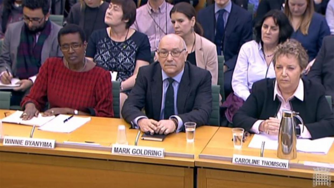 El director ejecutivo de Oxfam Reino Unido, Mark Goldring (en el centro de la imagen, durante su intervención este martes en la Comisión de Desarrollo Internacional de la Cámara de los Comunes), ha contado este martes en el Parlamento británico 26 nuevas denuncias por mala conducta desde que se destapó el escándalo por el comportamiento de sus trabajadores en Haití, según informa el diario «The Guardian». «En Oxfam Reino Unido, hemos tenido unos 26 casos, unas denuncias que nos han llegado que eran o nuevas denuncias que han llegado como consecuencia de las noticias o casos anteriores en los que las personas han dicho ‘no lo denuncié en su momento’. Se trata un periodo amplio, no estoy hablando de casos recientes», ha afirmado Goldring, en su comparecencia ante la Comisión de Desarrollo Internacional de la Cámara de los Comunes.