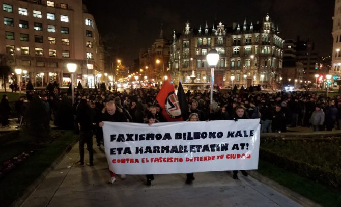 Alrededor de 250 radicales de izquierda se manifestaron anoche por las calles del centro de Bilbao para protestar contra la presencia de hooligans “fascistas” rusos del Spartak de Moscú en la capital vizcaína con motivo del partido de Europa League de mañana contra el Athletic Club. Se registraron momentos de tensión entre los manifestantes y algún aficionado del Spartak, que no ha pasado a mayores por el fuerte blindaje policial que ha desplegado la Ertzaintza. Los agentes de la policía vasca impidieron incluso a un ciudadano ruso que se enfrentara a los radicales vascos.