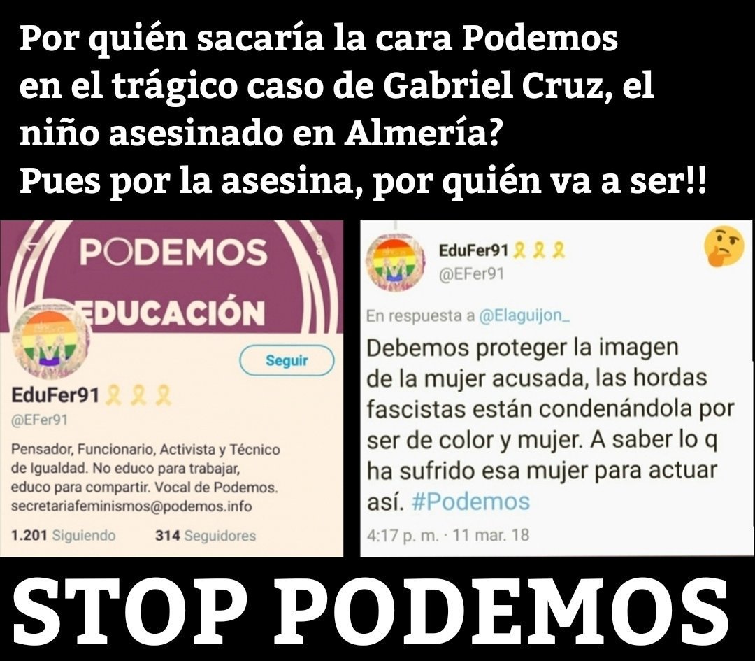 Hemos de ver cómo se convierte en un caso de defensa propia o algo igual de estrambótico, hemos de ver a esta carroña decir que el niño le atacó o algo así. Y cómo Pablo Iglesias le saca la cara, igual que todos los dementes que le siguen, pues no cabe otra explicación, dementes sin corazón.