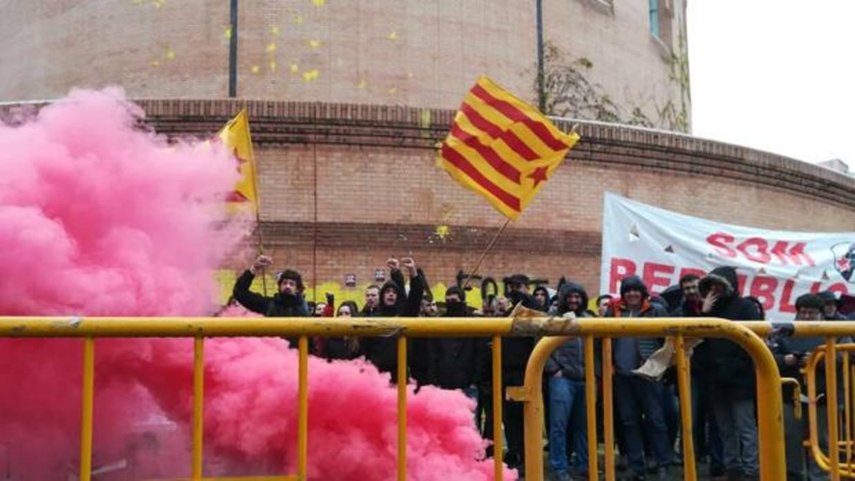 Los manifestantes de los Comitès en Defensa de la República (CDR) han provocado disturbios en el cruce de las calles Valencia y Llúria en Barcelona, donde los Mossos han desplegado un cordón para evitar que la movilización alcance la Delegación del Gobierno.