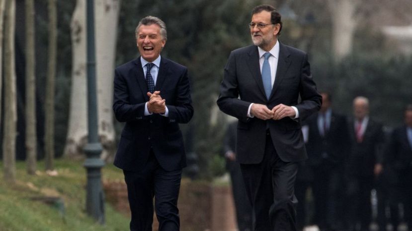 Rajoy en Argentina con Macri, quien donó un cheque por 16.666.000 $ (hace falta tener jeta) al Papa.
