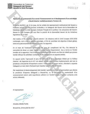 Vidal informó que las transferencias que publicamos y su contabilización se incluyó en el programa electrónico Gestión de Autonomía a cargo de la partida presupuestaria 2278900 ‘Otros trabajos realizados por otras empresas’ del programa 231 ‘Relaciones exteriores’ y bajo el concepto ‘Assesment contract for the development of multidimensional external action strategy in the EU’. Fue autorizado por el Departamento de Asuntos y Relaciones Institucionales y Exteriores.