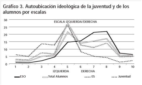 Lo que sí resulta significativo es la gran diferencia que existe en la forma de pensar en esta cuestión de los alumnos en relación, con el mismo arco de edades, con lo que piensa el resto de la juventud española.