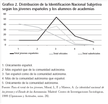 La identificación nacional subjetiva, también es un factor a considerar en la elección de la carrera militar. Parece que están íntimamente unidas estas tres variables: la identificación nacional, la tendencia conservadora o de derechas de los alumnos y la elección de la carrera militar. En nuestra Nación, según Rafael Martínez Martínez, habida cuenta de la actual organización territorial del Estado y dada la presencia de sectores que cuestionan su adscripción a la nación española, desde la aparición de movimientos secesionistas se vienen estudiando los sentimientos de pertenencia y los nacionalismos. Para tratar esta cuestión el investigador utiliza diversos instrumentos entre los que se destaca la Identificación Nacional Subjetiva (INS).