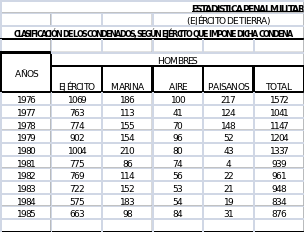 Como se puede apreciar en los cuadros estadísticos mostrados entre el año 1954 y el año 1985, la población reclusa en los Ejércitos bajó de 3263 a 876, lo que indica, claramente un cambio en el estilo de liderazgo incluso antes de la aprobación de la Ley Orgánica 12/1985, de 27 de noviembre, ya que entró en vigor el 1 de junio de 1986.
