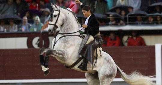 Media hora antes del comienzo del festejo, cae una tromba de agua. Se retrasa la corrida unos minutos, para reparar el ruedo. Vuelve a diluviar a partir del tercero, parece que va a haber suspensión pero los tres jinetes tiran para delante: su mérito es evidente y los tres cortan un trofeo. Sergio Galán se queda al borde de la Puerta Grande. Pablo Hermoso realiza una gran faena en el cuarto, el único complicado, en una excelente corrida del Niño de la Capea.
