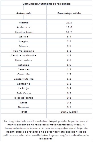 Para el examen del origen regional de los miembros de las élites durante el periodo de tiempo que abarca el último tercio del siglo XIX hasta principios del XXI he considerado la actual división en comunidades autónomas, agrupando las plazas africanas- actuales ciudades autónomas de Ceuta y Melilla- bajo la denominación de Norte de África.