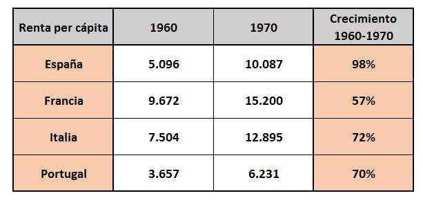 Quizás ni siquiera sus impulsores se imaginaban los resultados que traerían aquellos planes (al de 1959 le siguieron los Planes de Desarrollo de la década de los 60). Pero ningún otro país del mundo igualó el crecimiento económico español en aquellos años. En los siguientes dos cuadros se recogen las cifras del PIB per cápita en España, Italia, Francia y Portugal, así como el crecimiento de este indicador desde 1950.