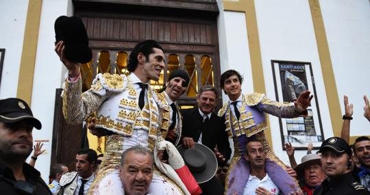 Roca Rey, a cuyo reclamo se cosechó la mejor entrada de la feria, fue el mandamás de la tarde y triunfador absoluto con cuatro galardones. Amarró ya la salida a hombros con el tercero, un jandilla mansito pero que sirvió y al que exprimió de principio a fin. Apabullantes el quite y el arrimón final, dejándose lamer la taleguilla. En medio, toreo de poder, circulares y un amplio abanico de muletazos, coronados con un espadazo que se cayó y resultó letal. Y más soberbio aún Roca en el estupendo sexto, desde los pendulares en los que no cabía ni el aire hasta su manera de barrer la arena, en derechazos y zurdazos colosales, a la humillada embestida. El desplante a cuerpo limpio puso la plaza en pie. Otras dos orejas (con petición de rabo) que paseó con el ganadero Borja Domecq, feliz por la corrida y los triunfos brindados. Y vuelta al ruedo en el arrastre para «Juzgador», con la pasión totalmente desbordada ya en un broche de cuatro puertas grandes: la terna y el mayoral.