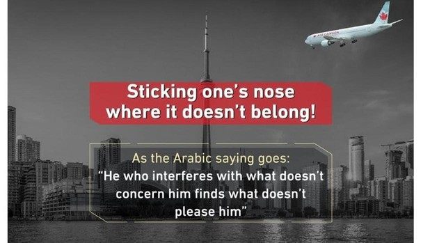 Una organización de Arabia Saudí ha pedido disculpas por la difusión de una imagen alterada en Twitter que muestra un avión sobrevolando Toronto cerca de la famosa «Toronto’s CN Tower», en una aparente simulación al 11S de Nueva York.