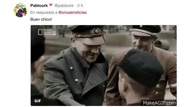 Un tal Pabloork me comparó con los chicos de las Juventudes Hitlerianas a los que Hitler condecoró con medallas y pellizcos en las mejillas antes del hundimiento definitivo del III Reich. Mientras que, para otro, el problema es que era una “fascista”.