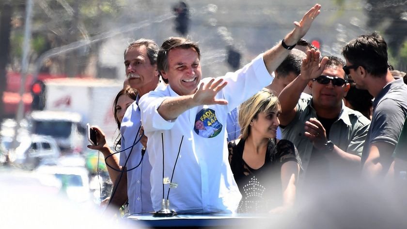 El favorito en la disputa presidencial brasileña, el excapitán del Ejército y líder de la derecha identitaria, Jair Bolsonaro, fue apuñalado durante un comicio en la ciudad de Juiz de Fora, en el estado de Minas Gerais. El hijo del candidato, el diputado Flavio Bolsonaro, informó en su cuenta twitter, que la herida fue superficial y que su padre se recupera bien.