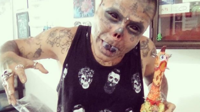 Un tatuador se corta la nariz y las orejas para parecer una calavera