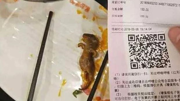 Cuando comenzó a remover el caldo, la mujer vio que en el plato había una rata muerta. Al avisar al personal del restaurante, los encargados intentaron solucionarlo con la mayor discreción posible, ofreciéndole incluso 5.000 yuanes (unos 600 euros) para comprar su silencio. Pero la mujer no se conformó y decidió compartirlo en la red social china más importante, Weibo, donde consiguió que tuviera miles de interacciones.