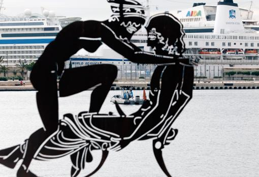 Junto al emblemático edificio Veles e Vents y entre el agua y la antigua base del Alinghi, una hilera de más de una docena planchas metálizas de gran tamaño -tanto la figura como su molde- evocan desde este fin de semana el arte griego con volúmenes en los que se distinguen penes, senos o genitales femeninos y que representan escenas en plena masturbación, a punto de realizar una penetración o una felación o practicar sexo anal.