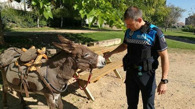 «Nos topamos de nuevo con el burro de ayer en el #CampoGrande», anunciaba la Policía en su cuenta de Twitter donde informa de que el dueño es un peregrino francés del Camino de Santiago que había dormido en un hotel y había dejado al burro pernoctando en un parque de Valladolid.
