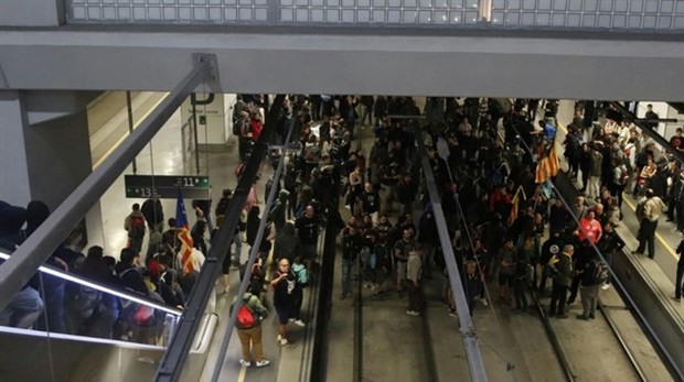 Según ha podido comprobar Efe, unas 200 personas han irrumpido en la estación de tren hacia las 6.50, pese a que media docena de miembros del personal de seguridad y mossos d’esquadra han intentado impedirlo bloqueando las puertas, si bien no lo han conseguido ante el gran número de activistas que se han concentrado en el lugar.