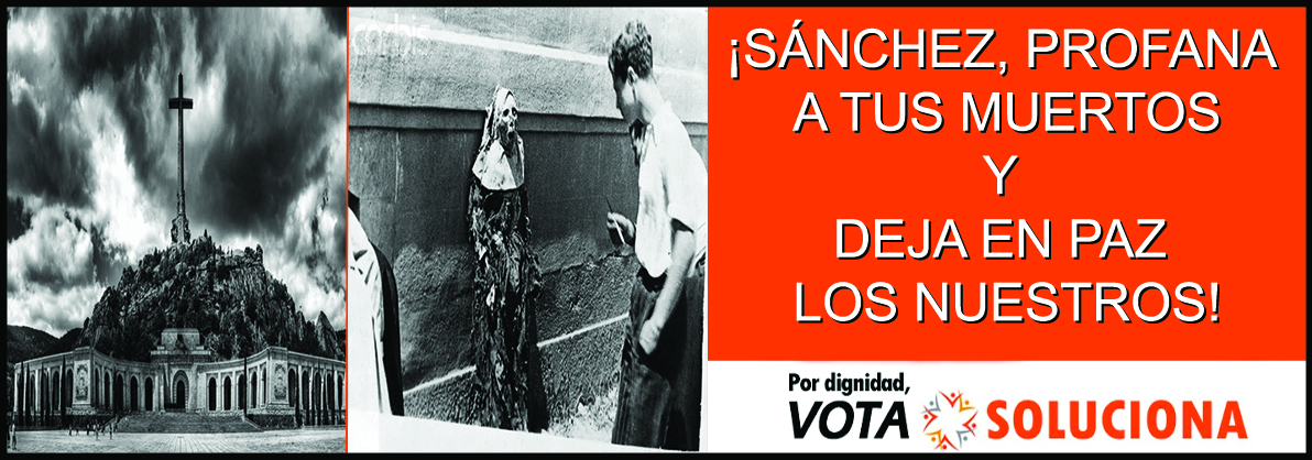 (SOLUCIONA) Ante la decisión arbitraria contraria a toda legalidad del Gobierno español –constituido por un Frente Popular muy semejante al que provocó la Guerra Civil con su revolución comunista– de exhumar los restos de Francisco Franco del Valle de los Caídos, SOLUCIONA (única formación política que se ha pronunciado públicamente en contra de esa pretensión), quiere manifestar ante la opinión pública los siguientes puntos: