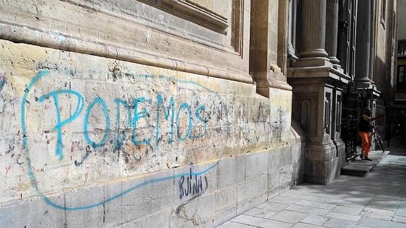 Proliferan las pintadas en la catedral de Granada y la peor chusma de la ciudad utiliza sus paredes como urinario público. Ahora que los traicioneros dirigentes de la Iglesia española tienen lo que se merecen, el obispo traga y calla. Antes quemaban los templos y ahora pintan y se mean en sus muros, como en el de Berlín.