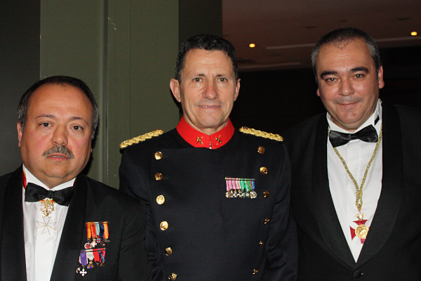 Armando Robles (d), junto al general de división Ángel Gozalo Martín, jefe de la Guardia Civil en Cataluña, tras ser nombrado en Barcelona Caballero de la Orden del Antiguo Reino de la Corona de Aragón. A la izquierda, el empresario y político catalán Gerard Bellalta.