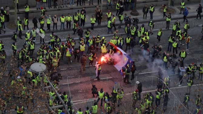 Unos 89.000 policías han sido desplegados en todo el país. De ellos, unos 8.000 han sido destinados a París para evitar que se repita el caos del sábado pasado, cuando varios alborotadores quemaron automóviles y robaron tiendas en el famoso bulevar de los Campos Elíseos, además de rayar el Arco del Triunfo con mensajes dirigidos al presidente Emmanuel Macron. A través de las redes sociales, los manifestantes han descrito este fin de semana como el «Cuarto Acto» de un dramático reto a Macron y sus políticas.