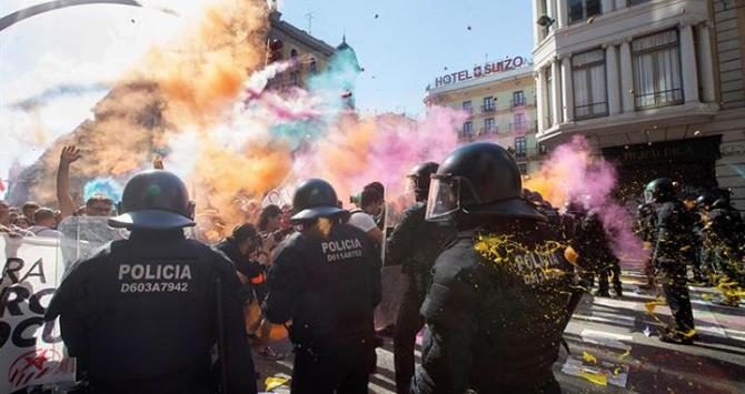 Los Mossos d’Esquadra cargan en Barcelona contra independentistas que pretendían llegar a la sede de la Jefatura Superior de Policía