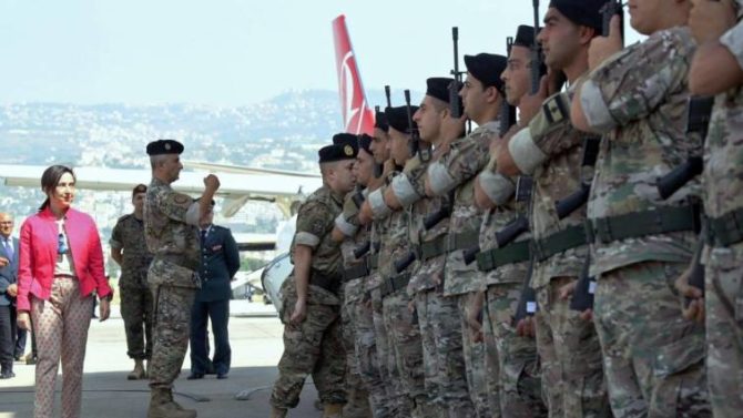 Cuando el Ejército libanés llegó a lo más bajo: Margarita Robles pasando revista a tropas del Líbano.