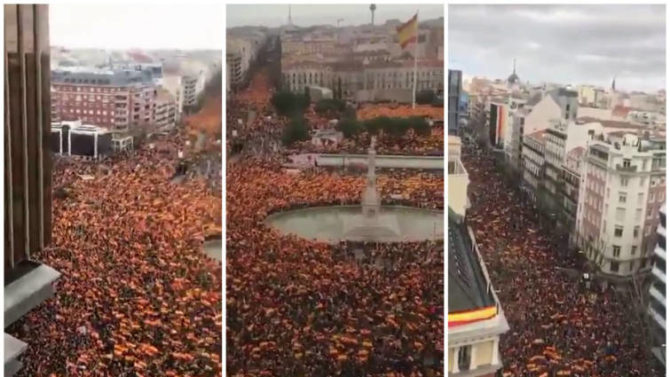La Policía Nacional ha cifrado en unas 45.000 las personas que han acudido a la Plaza de Colón de Madrid, convocados por PP y Ciudadanos, mientras que estos partidos han calculado en 200.000 los asistentes a la protesta contra Pedro Sánchez.