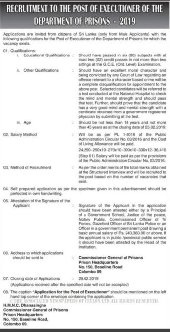 Este lunes, el diario oficial publicó las condiciones para estas dos vacantes, con un salario mensual de 36.310 rupias (unos 180 euros). Se requiere además, según el anuncio, un «excelente carácter moral» y «fortaleza mental».