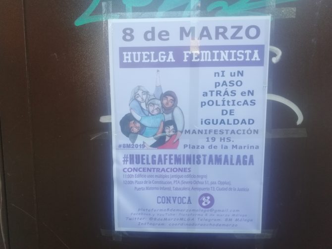 Las hembristas malagueñas utilizan la imagen de una mujer con el velo islámico para reivindicar la huelga feminista del 8-M