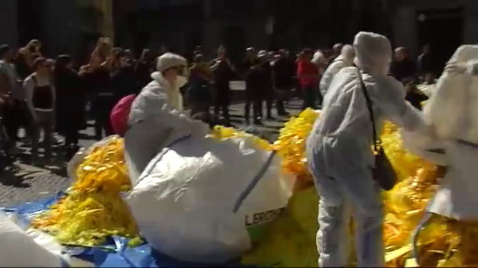 Antiindependentistas cubren la puerta de la Generalitat con miles de lazos amarillos que han retirado de las calles – Alerta Digital