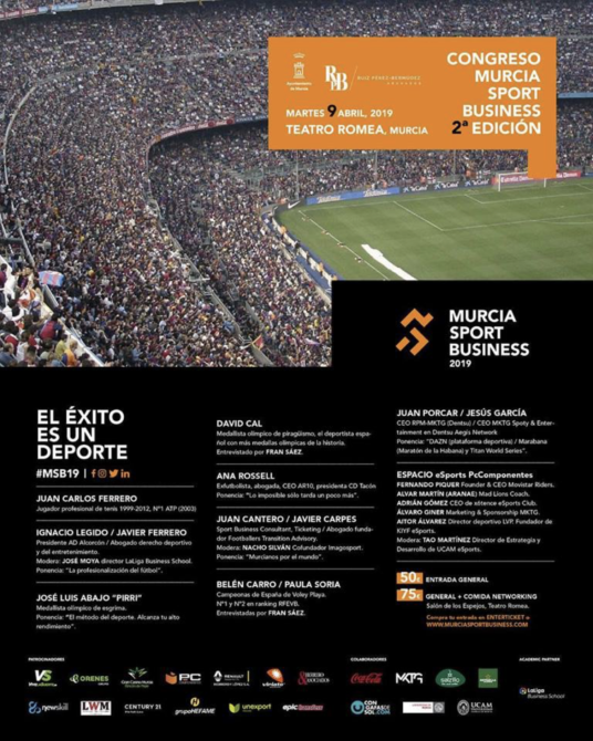 El 9 de abril se celebra en el Teatro Romea de Murcia, la segunda edición del Murcia Sport Business (MSB 19), el primer evento de la Región sobre deporte y negocio que reúne a los profesionales más influyentes del panorama nacional para dar luz sobre los temas más relevantes que afectan al sector, tras el éxito absoluto de la primera edición.